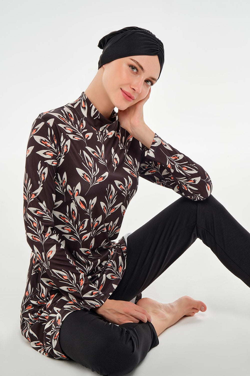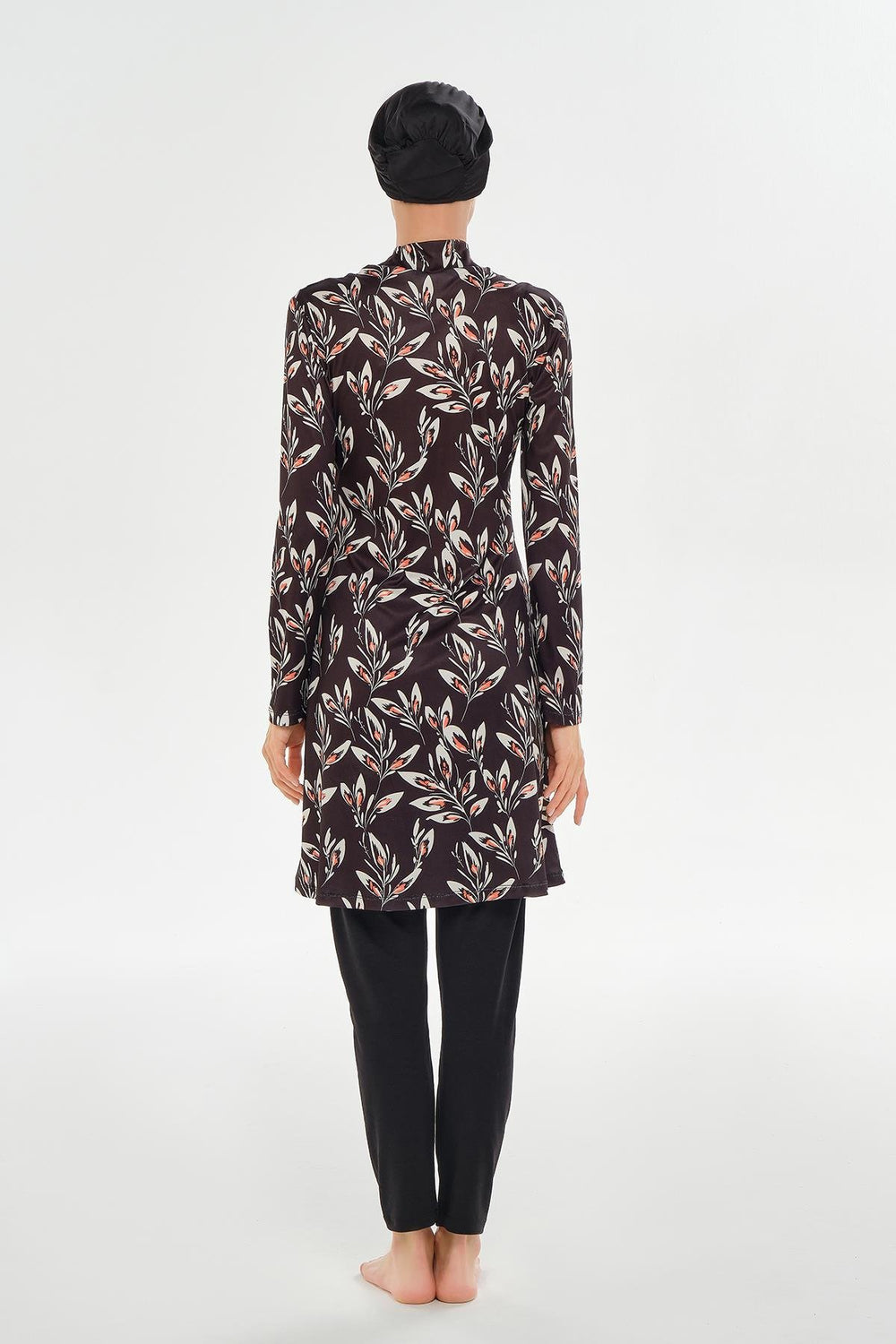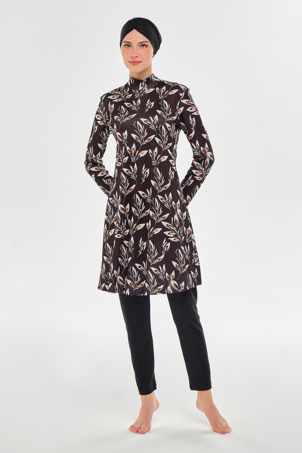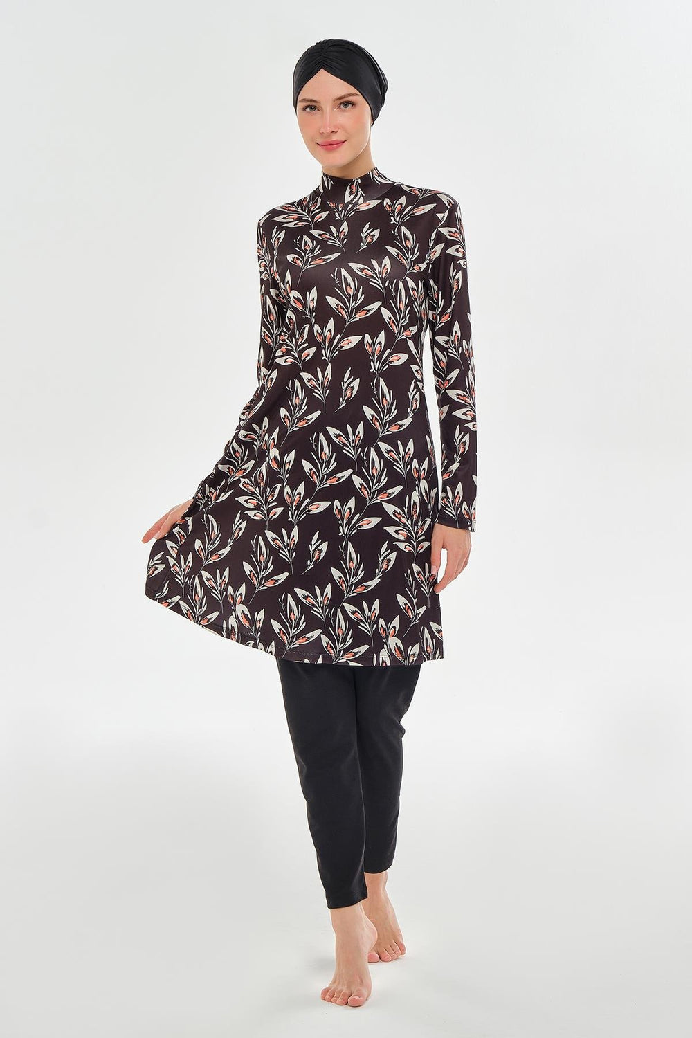 long-sleeved modest swimsuit is a candidate to be an indispensable part of your summer style with its elegant patterns and modern cut. Made of interlock fabric, this swimsuit offers a long-lasting use with its durable and quality structure. Its water-repellent and fast-drying feature provides all-day comfort in your beach and pool activities. Its long-sleeved and fully closed design helps protect you from the sun's rays, while highlighting your style with its elegant pattern.