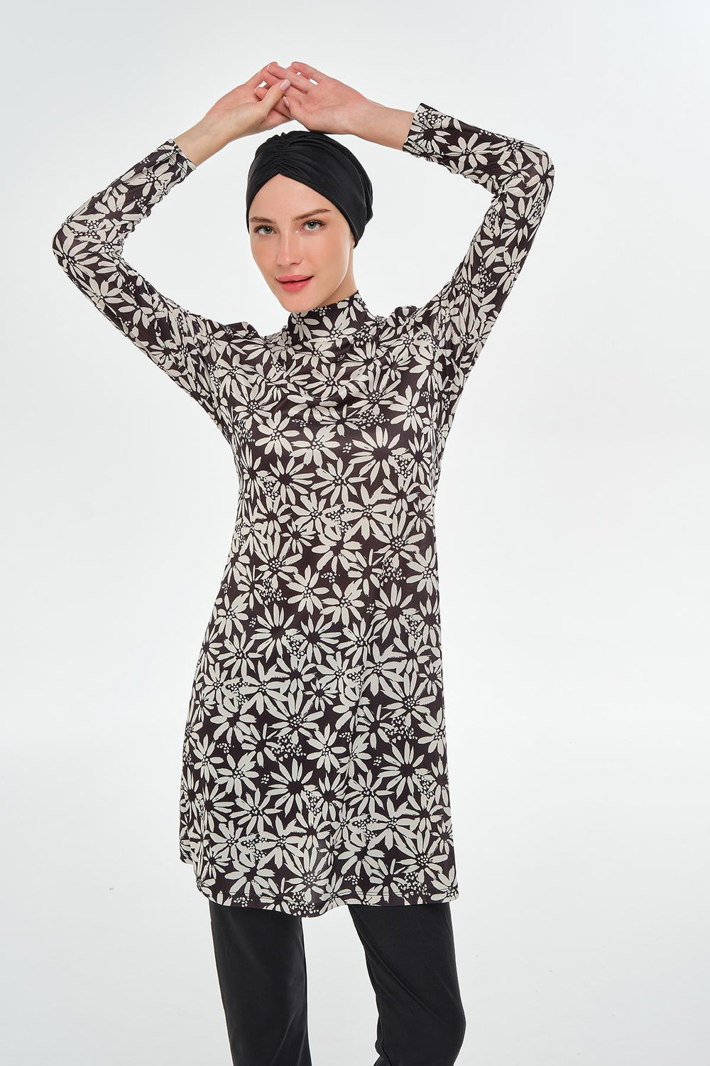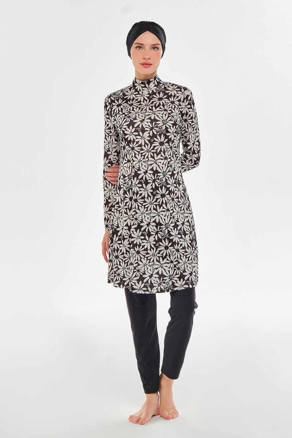 long-sleeved modest swimsuit adds a touch of sophistication to your beach and pool style with its stylish floral patterns and quality structure. Thanks to the fact that it is made of interlock fabric, it offers a durable and long-lasting use. With its water-repellent and fast-drying feature, it keeps you dry and comfortable all day long. Its long-sleeved and fully closed design helps protect you from the sun's rays, while completing your style with its elegant pattern.