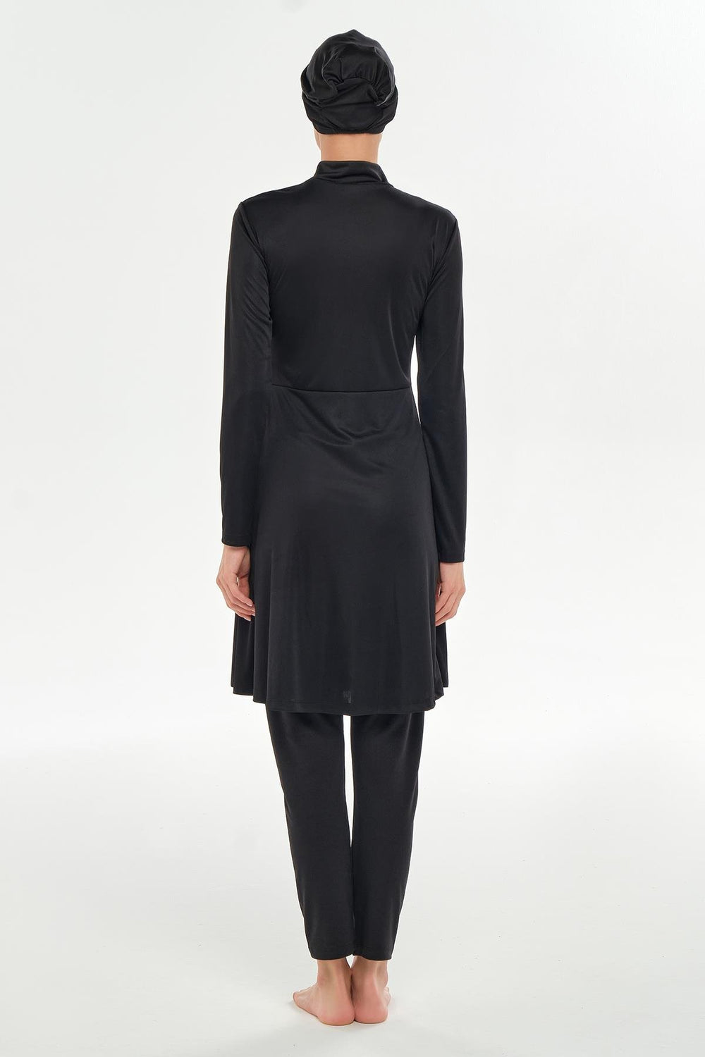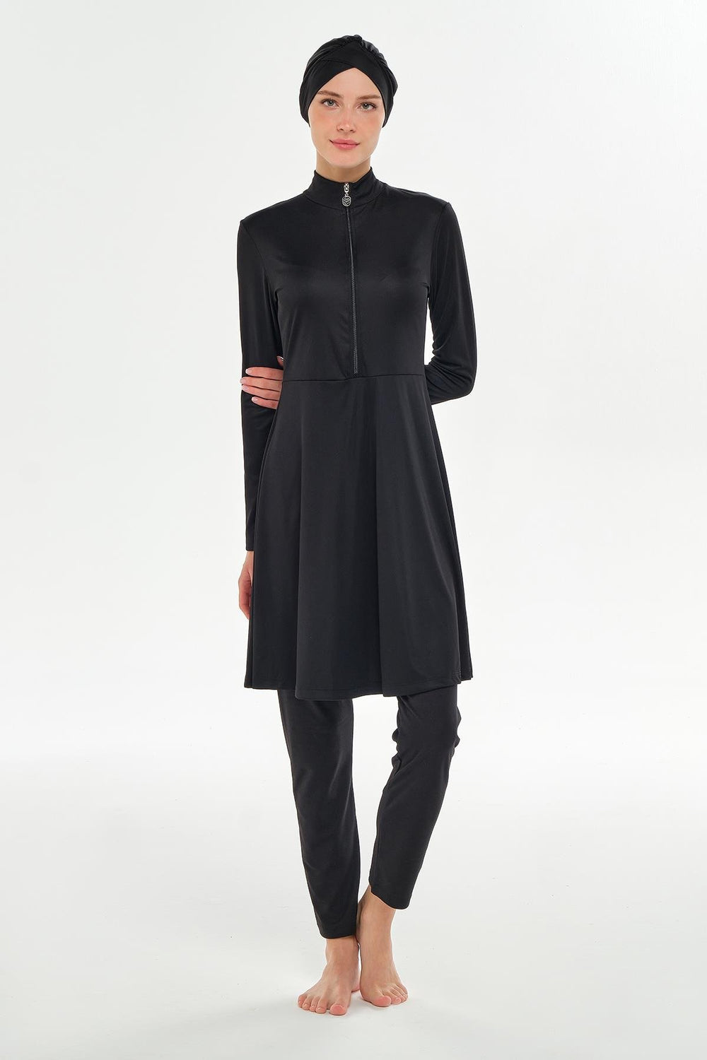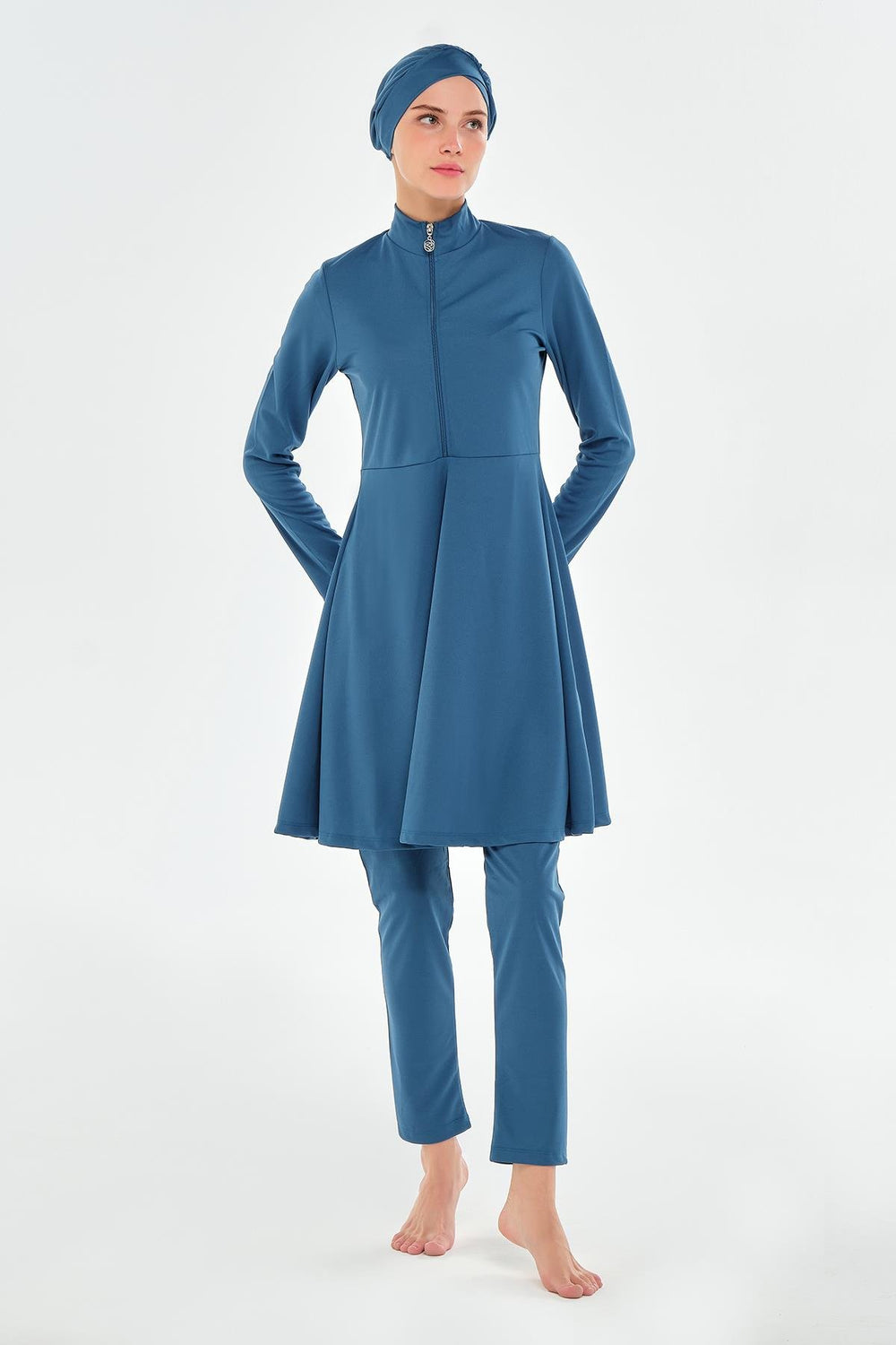 long sleeve hijab swimsuit draws attention with its elegant and simple design. Thanks to its interlock fabric structure, it offers a durable and comfortable use. Thanks to its fast drying feature, it provides a practical experience on the beach and in the pool, while providing an elegant appearance with its minimal design. Suitable for everyday wear, this swimsuit is an ideal choice for those looking for an option that is both functional and aesthetic.