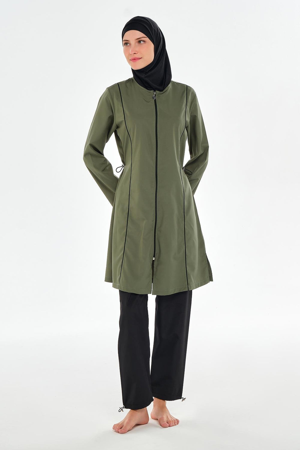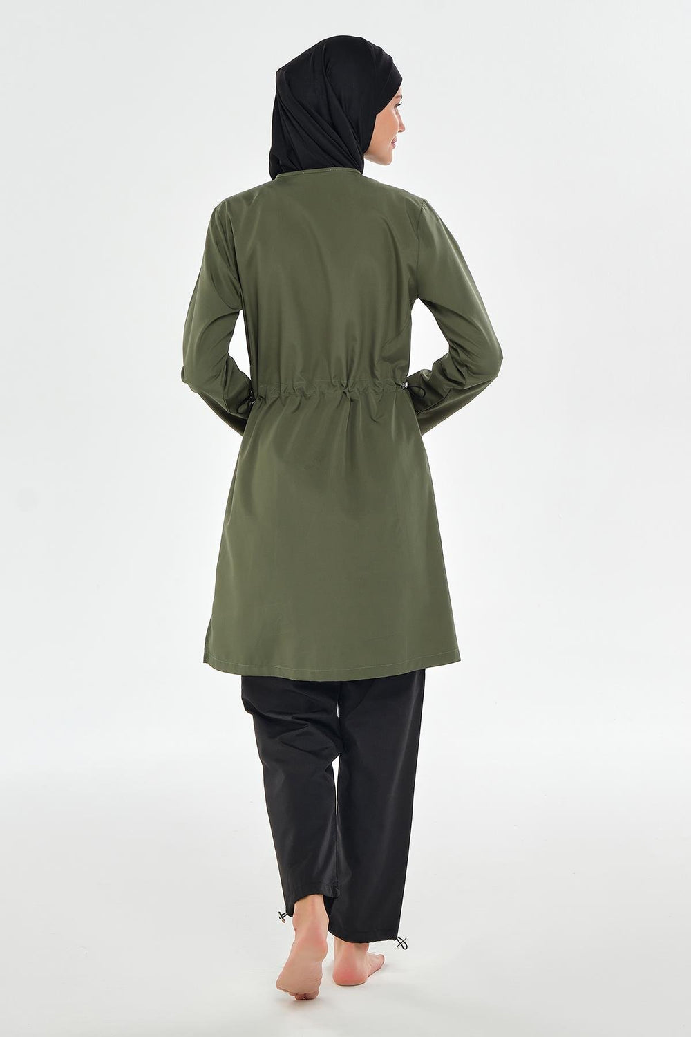 long-sleeved modest swimsuit draws attention with its simple and elegant design. Thanks to its structure made of interlock fabric, it offers durability and comfort together. With its fast-drying feature and different color options, it provides both a stylish and comfortable use.
